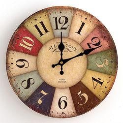Promoción, barato, estilo francés de campo, vintage, MDF, redondo, creativo, reloj de pared de madera, decoración del hogar